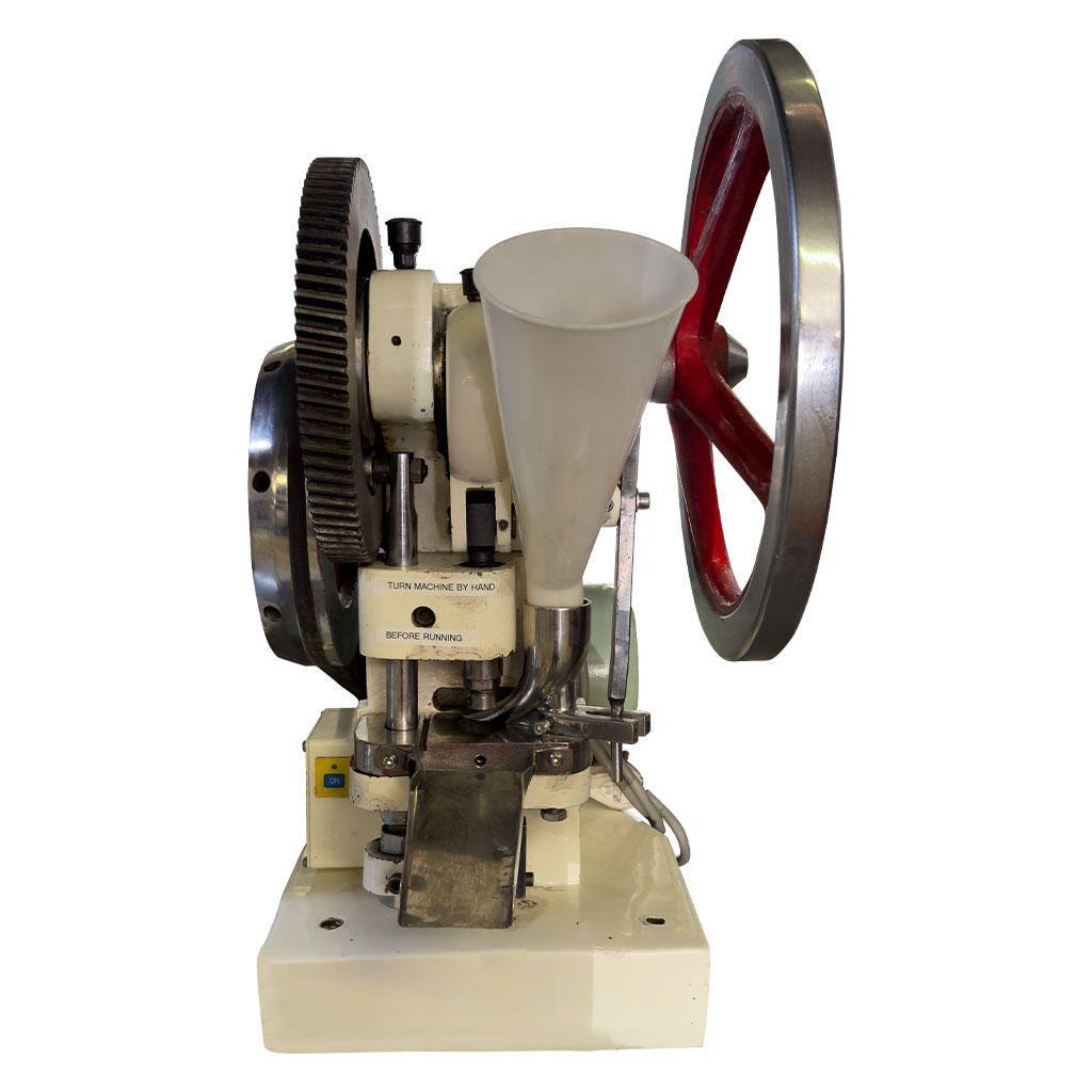 The TDP6 It is equipped with a powerful motor and is particularly suitable for irregular tablet shapes. The basis for the TDP-6 Single Punch Tablet Press is the TDP-5 Single Punch Tablet Press, but with an improved drive mechanism, a stronger motor and a higher maximum pressure in tablet production.